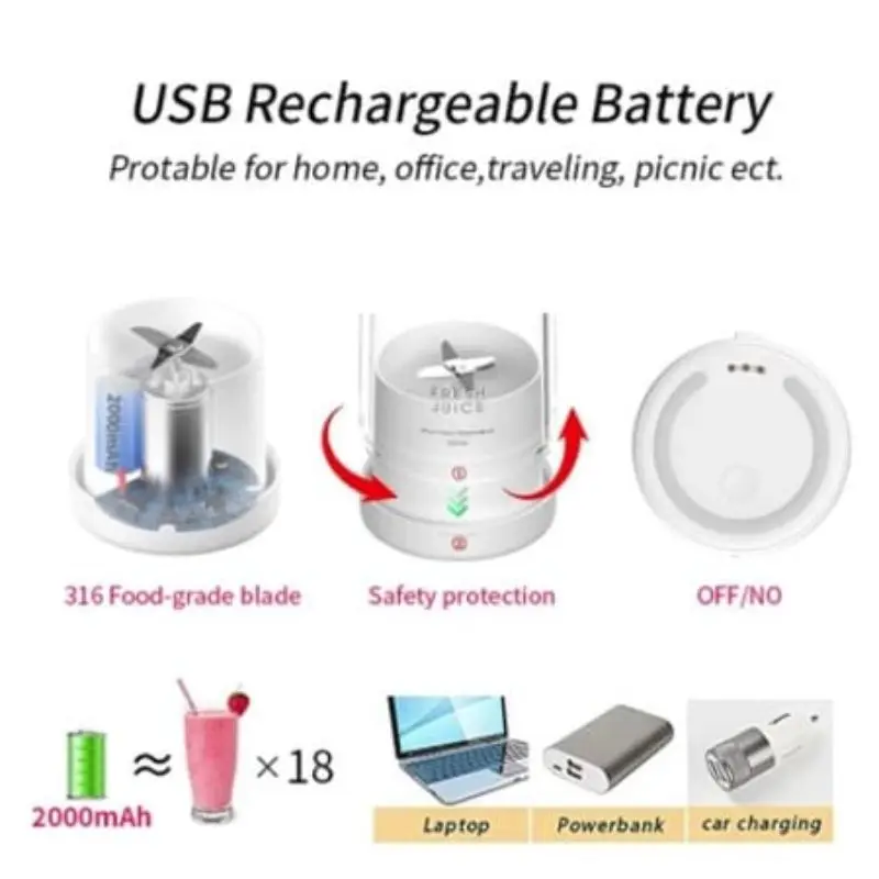 Contem: 1 mini liquidificador com cabo USB de carregamento
