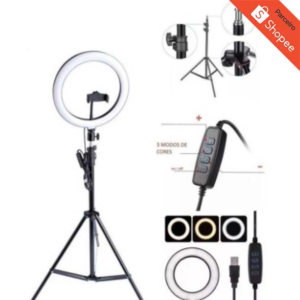 – Ring light acompanha cabo usb NÃO acompanha carregador/tomada